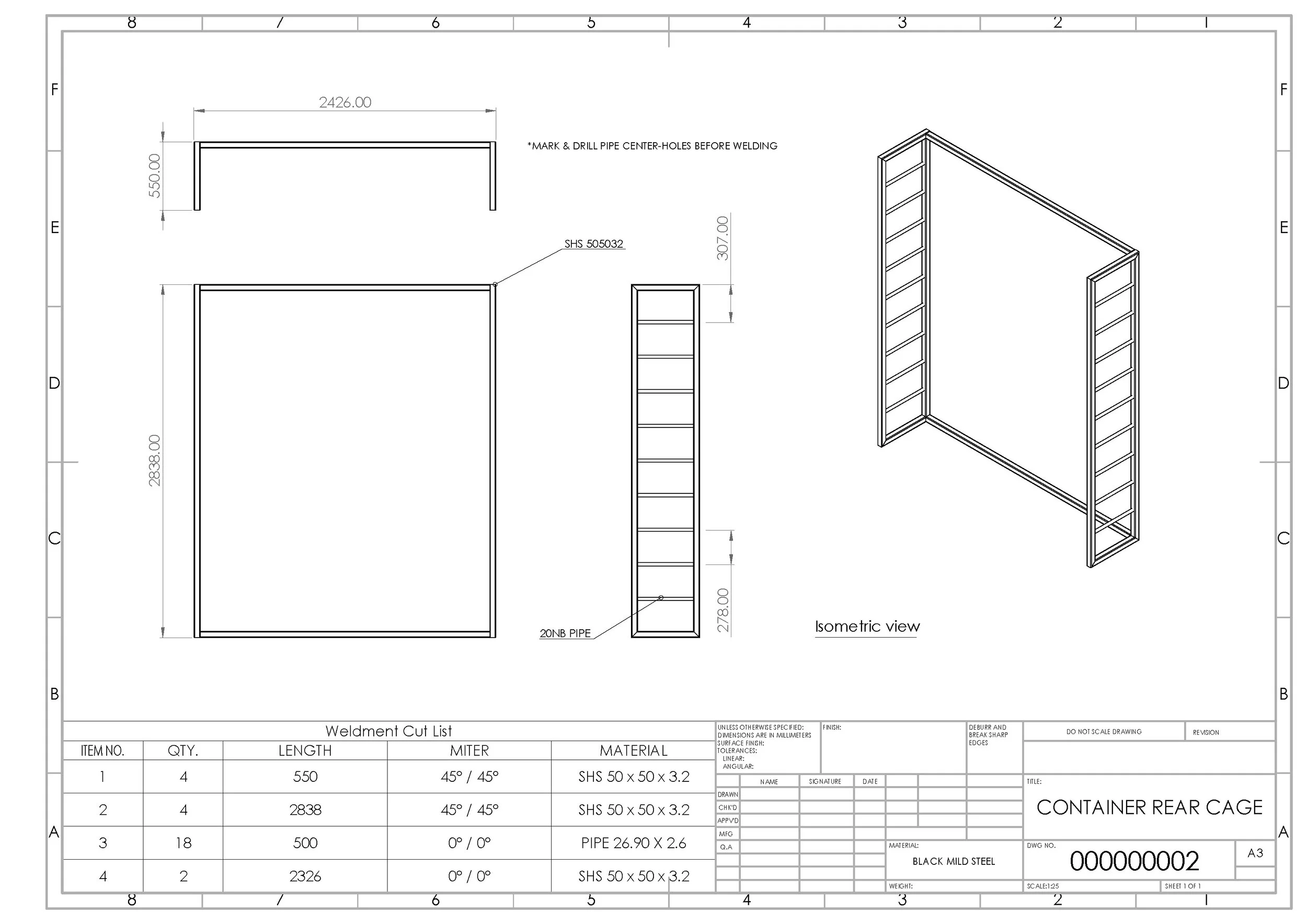 A recent design update I have been working on is a rear external cage/screen to house the power, solar, a/c and antennae units cleanly. It is of a fairly basic construction that has gone through several iterations and I have attached a drawing below. As always it is slightly out of date due to last minute design changes during fabrication (overall dims/ladder bars > louver). The design consists of a cage spanning the entire rear face with both insulated louver sidewalls and a perforated roller shutter for max ventilation, the cage is erected in 4 separate sections and fastened with universal container bridging clamps. It is assembled in such a way that all the pieces clamp together to support each other whilst closing off the studs to make it secure and tamper-proof.